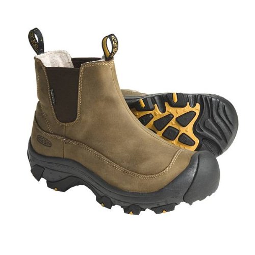 CLOSEOUTS . Thanks to a KEEN.DRY waterproof breathable membrane, 200g of KEEN.WARM insulation, Keen's Anchorage boots keep water out, heat in and footing solid, all wrapped up with the traction of a winter pac boot, combined with classic Keen protection, comfort and style. KEEN.DRYand#174; waterproof breathable membrane KEEN.WARMand#174; insulation Nubuck upper with dual elastic side panels Removable EVA-cushioned insole Injection-molded EVA midsole Non-marking, dual-climate rubber outsole with 4mm multi-directional lugs TPU shank Calf circumference: 12andquot; Height: 5andquot; Weight: 2 lb. pr. Medium width Made in China Visit our Shoe Sizing Guide